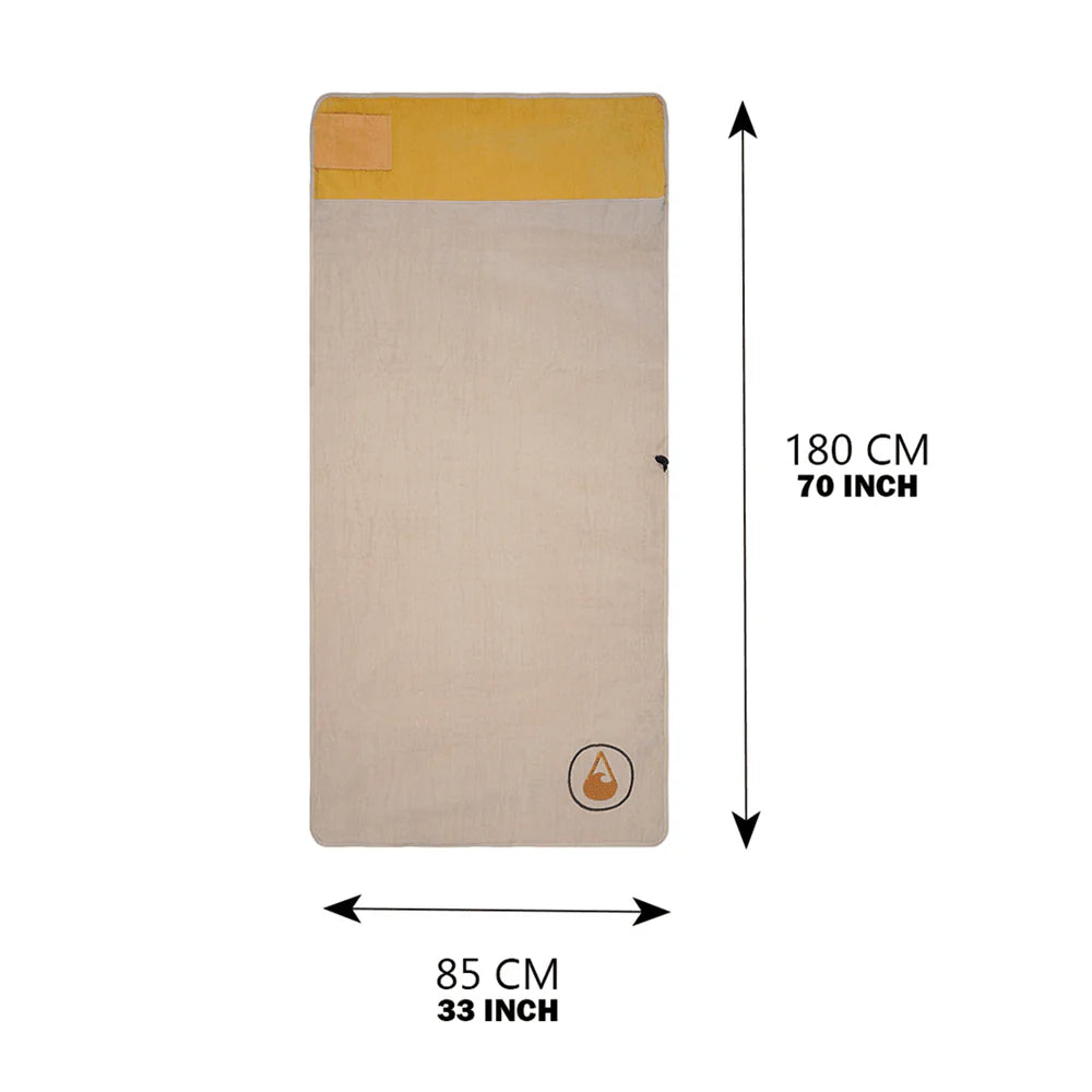 Badetuch mit Zubehörtasche und Kopfkissenfach. Verstau dein Handy, Schlüssel und/ oder Portemonnaie ganz einfach in der praktischen Fronttasche. Deine Kleidung kannst du in das rückseitige Kopfkissenfach schieben. Das Kopfkissenfach dient ebenfalls zur Fixierung des Handtuches auf Sonnenliegen. Und damit dein Strandtuch beim Duschen nicht am Boden liegt, hänge es einfach an der mittig platzierten Schlaufe auf. Du willst dir deinen Autositz nicht verschmutzen? Das Strandtuch leistet dir auch prima Dienste als Sitzbezug.